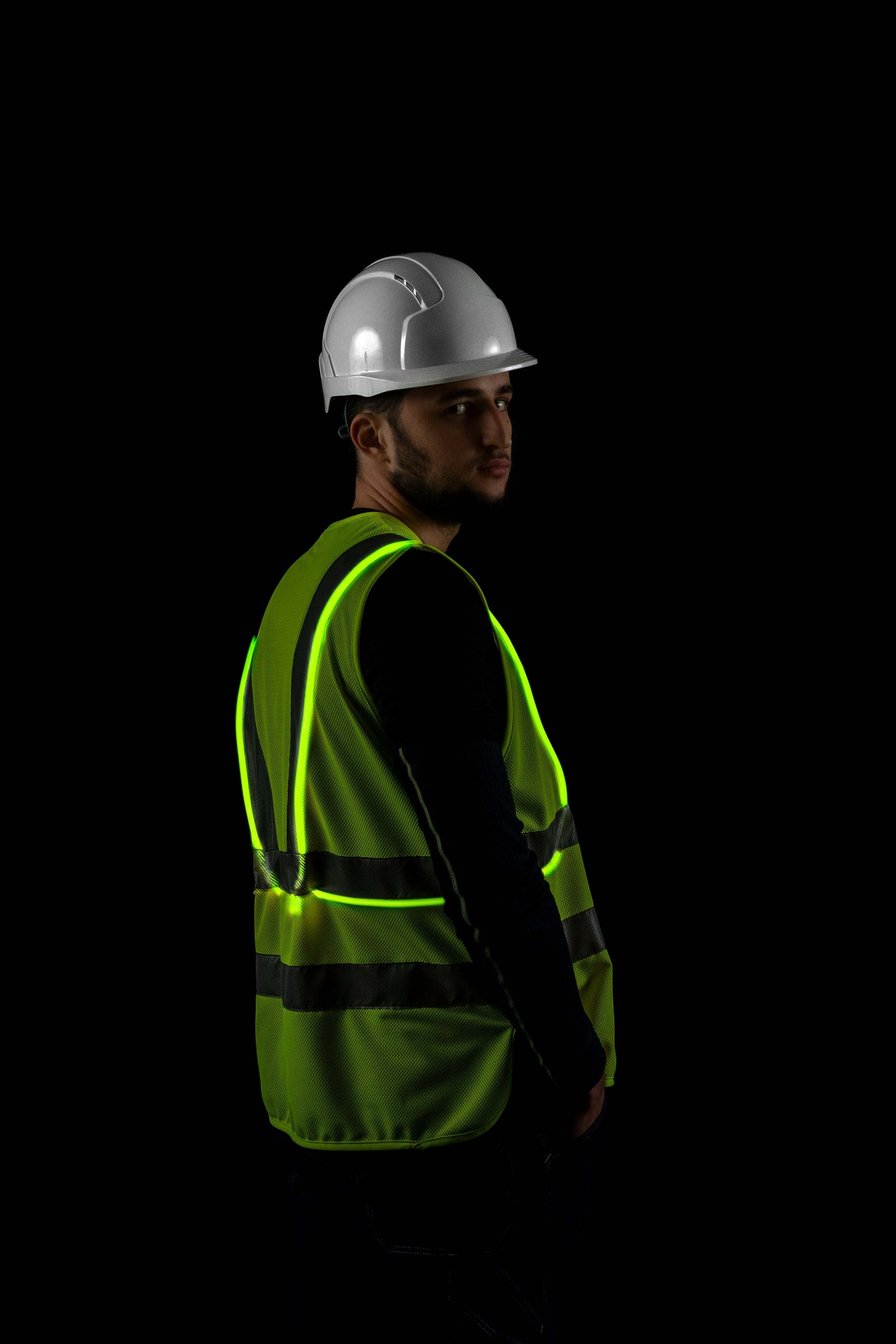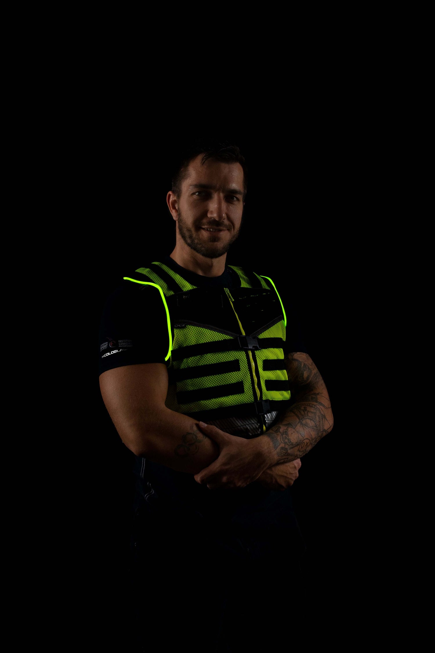 Využívá technologii svícení, která zajistí viditelnost až na 3 km daleko. Vesta má reflexní prvky, nenarušuje normy a je plně pratelná a odolná.
